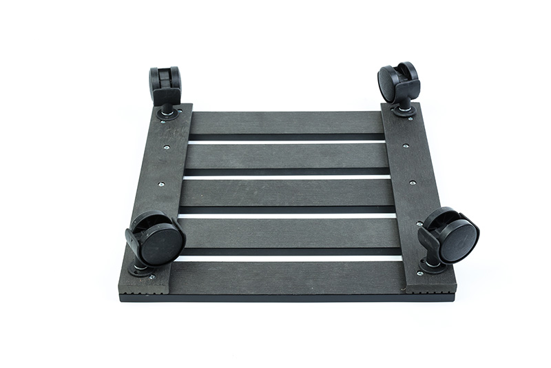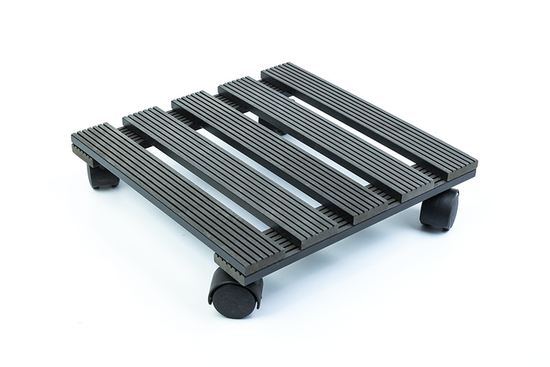 Square WPC flower pot base with a side length of 30cm, adopting symmetrical aesthetic design, suitable for square, rectangular or round flower pots (caliber ≤30cm), widely used in balconies, courtyards, commercial landscape flower beds and other scenarios. Assembled from high-quality WPC panels with screws, stable in structure; equipped with small wheels at the four corners for flexible movement. It can not only raise the bottom of the flower pot to promote ventilation and drainage but also avoid dampness and mildew caused by direct contact between the flower pot and the ground, making it a practical auxiliary accessory for outdoor flower growing.