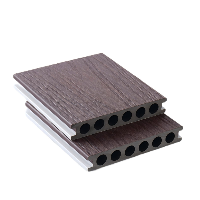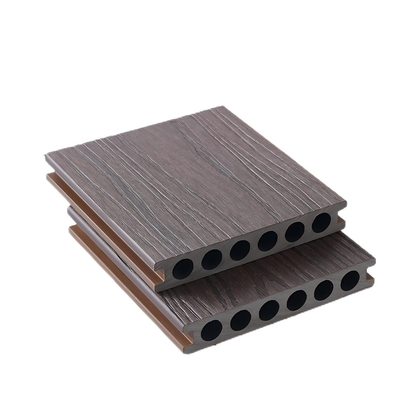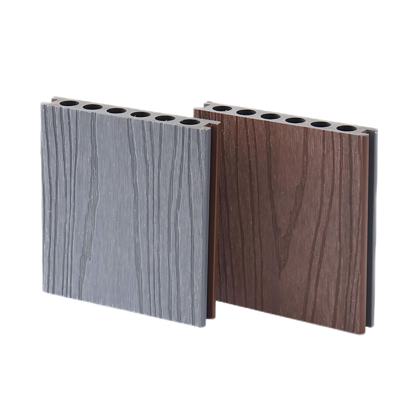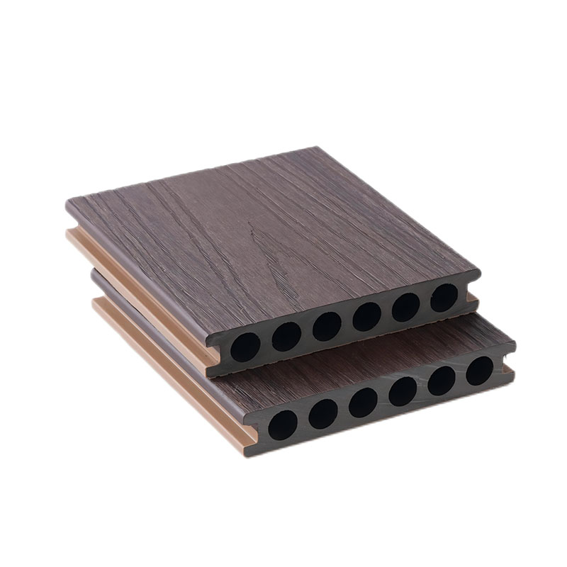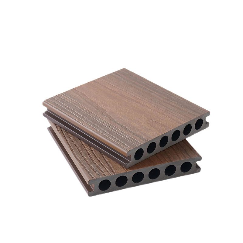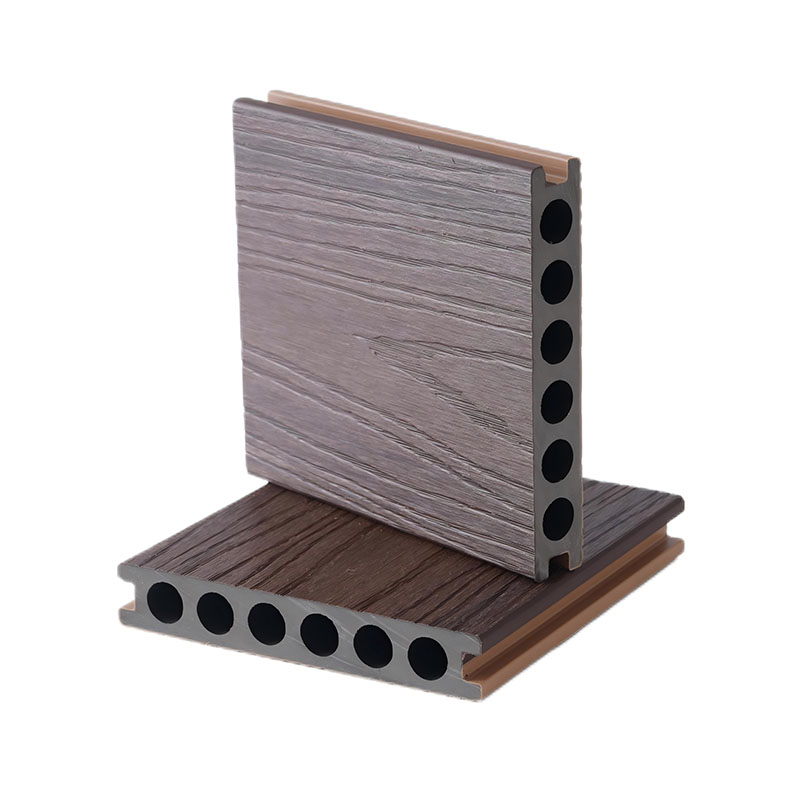 Capped composite hollow decking with round holes adopts the composite technology of high-density WPC base material and co-extruded layer. The surface is covered with a wear-resistant and stain-resistant co-extruded outlayer, which can effectively resist UV radiation and daily wear, ensuring no fading or cracking during long-term outdoor use. The innovative hollow structure with round holes greatly reduces the self-weight while ensuring structural stability, lowering installation and transportation costs, and has excellent sound insulation, heat insulation and drainage performance. Suitable for high-frequency pedestrian flow scenarios such as commercial plazas, scenic trails and municipal terraces, it is easy to install without complicated base treatment. It can be quickly spliced with special accessories, combining environmental protection and durability. The formaldehyde emission reaches E1 level and is recyclable.