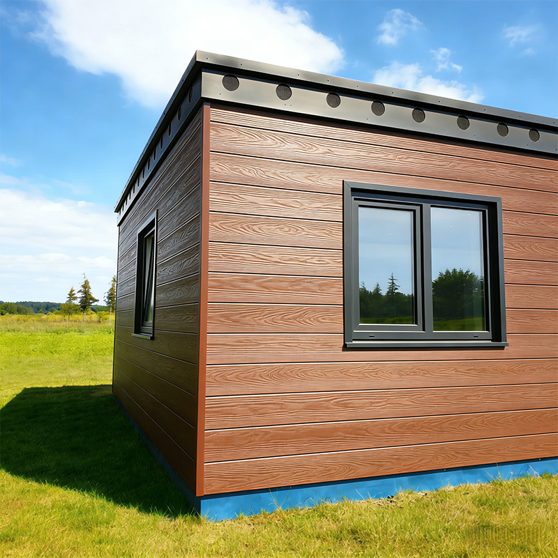 封顶式木塑外墙挂板采用“高密度木塑基材+共挤保护层”的一体化复合技术。表面纹理可定制成各种木纹风格,具有自然细腻的质感,集装饰与保护于一体。共挤层紧密包裹基材,赋予产品超强的抗紫外线、抗污渍和耐磨性能。在长期户外使用中不会褪色或开裂,在室内使用时也不易变形或发霉。适用于住宅内外墙、商业空间立面、民宿装饰和景区走廊等多种场景,不仅摆脱了传统墙体材料的沉重和繁琐施工,还具有轻质优势,无需进行复杂的基底处理。该产品环保,甲醛释放量达到E1级,不含重金属,且可回收利用。支持颜色、长度和木纹纹理的定制,采用螺钉固定安装,结构稳定可靠,施工高效便捷。后期维护只需用清水定期清洁即可,为室内外墙体提供了一种集美观、耐用和环保于一体的综合装饰解决方案。
